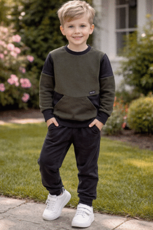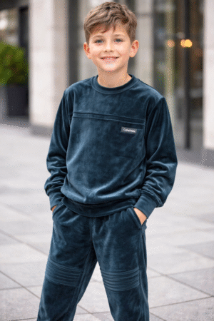 Kostiumėlis berniukui iš soft veliūro dviejų spalvų.