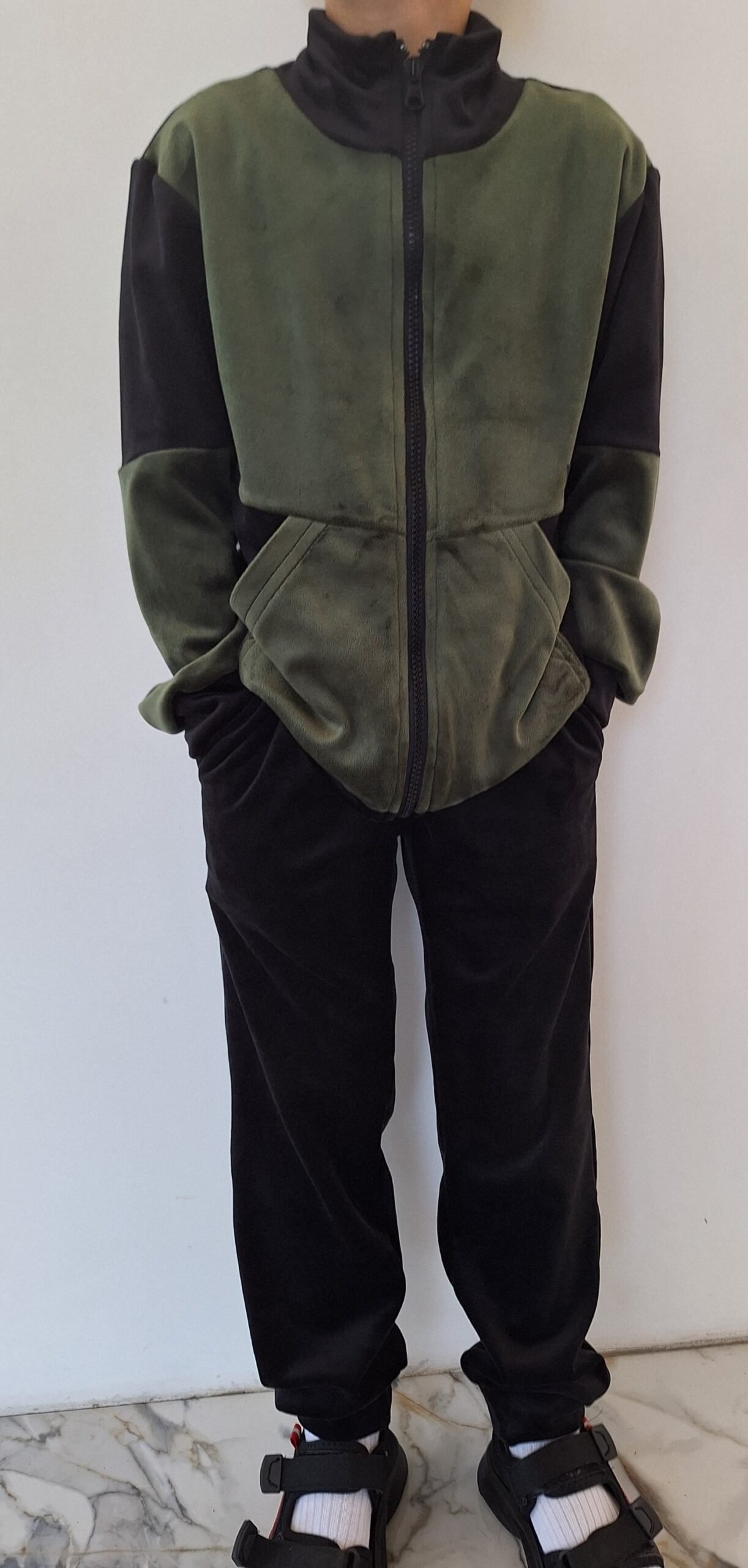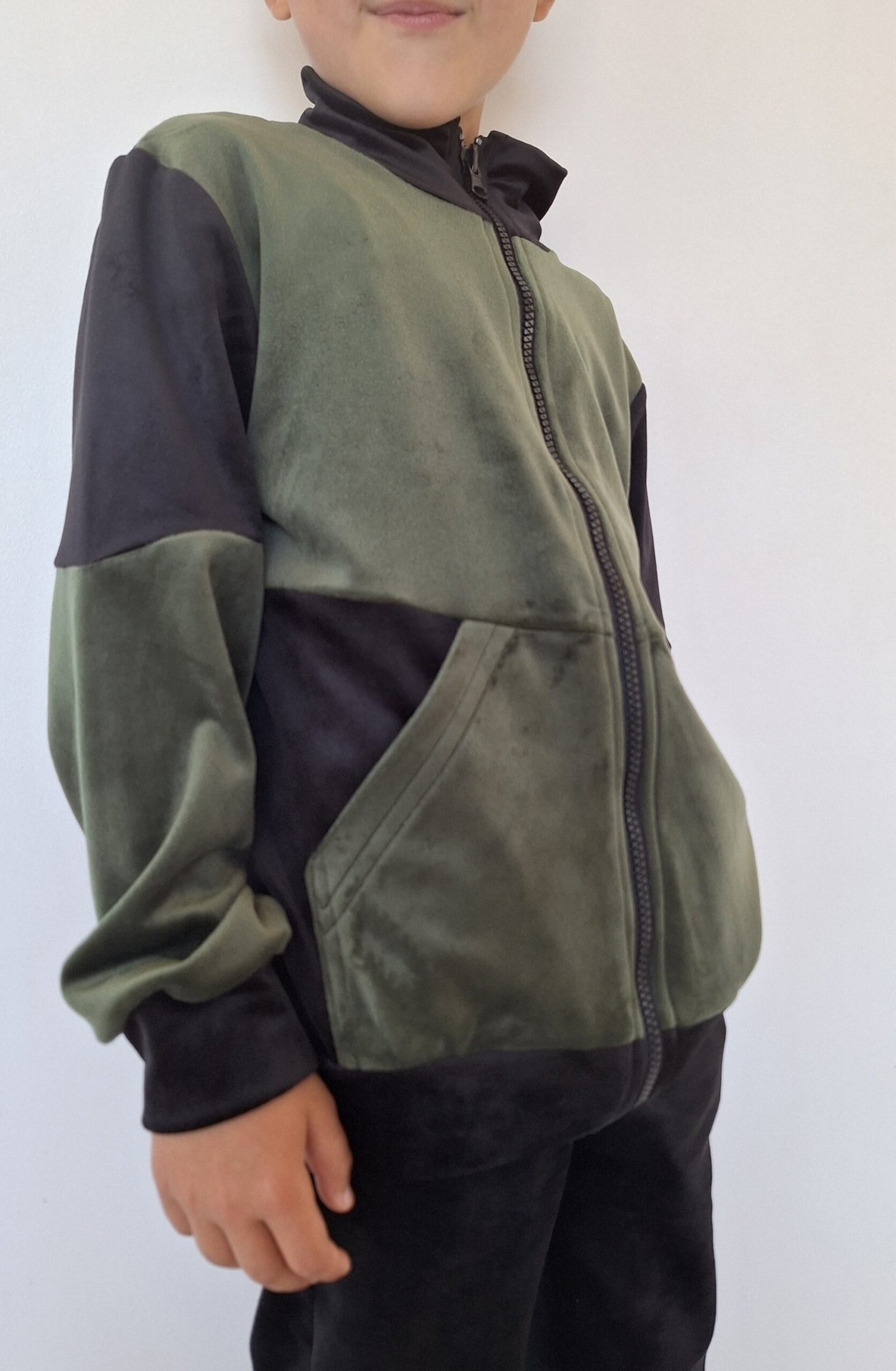 Kostiumėlis berniukui iš soft veliūro dviejų spalvų su užtrauktuku